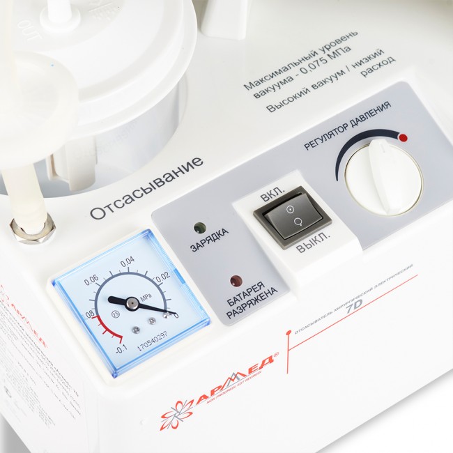 Отсасыватель обеспечивает высокое отрицательное давление. Отсасыватель может работать от бортовой сети, от встроенной АКБ, от сети переменного тока. Отсасыватель оснащен специальным кронштейном для подвешивания на горизонтальной и вертикальной поверхности.