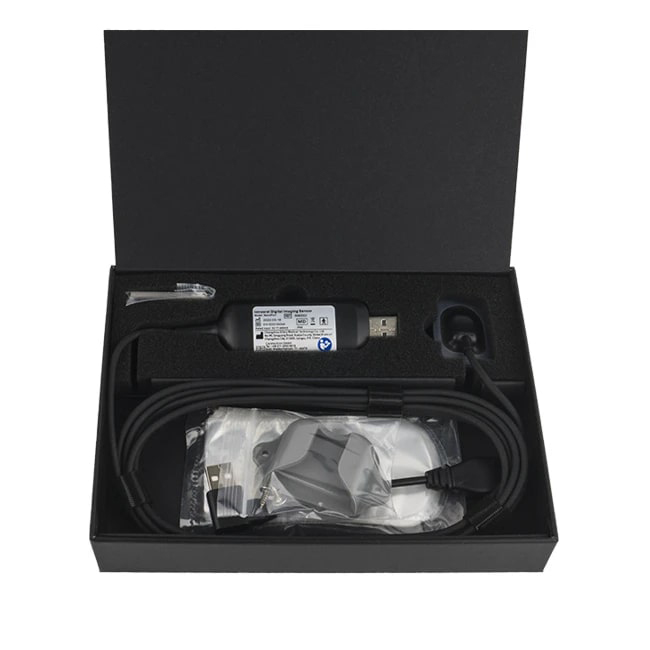 - Ультратонкая конструкция корпуса. 4,4 мм самый тонкий датчик среди радиовизиографов.