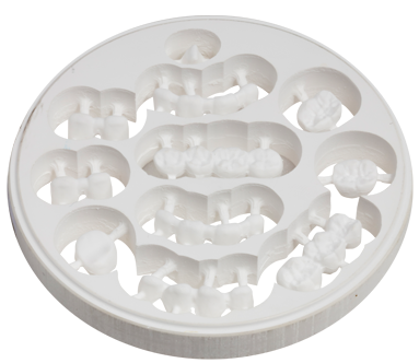 - Материалы для фрезеровки: Металл, заготовка из титана для изготовления абатментов, премиллы и гибридная керамика, цирконий, воск, РММА