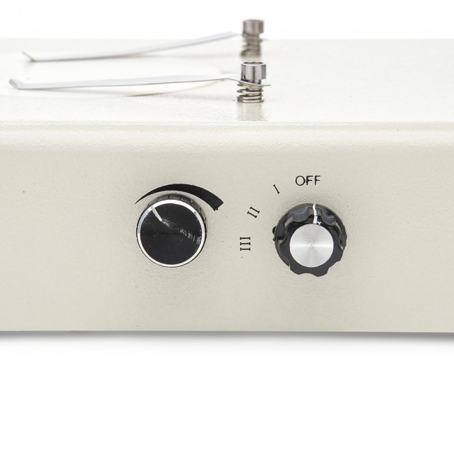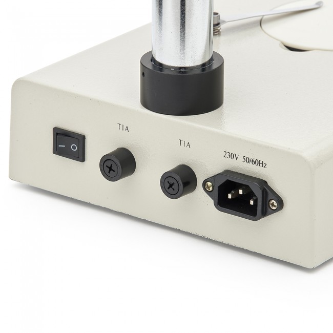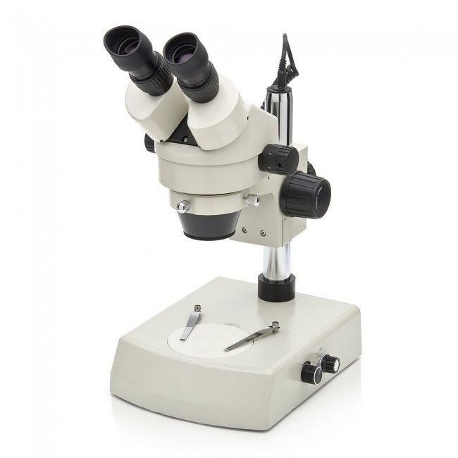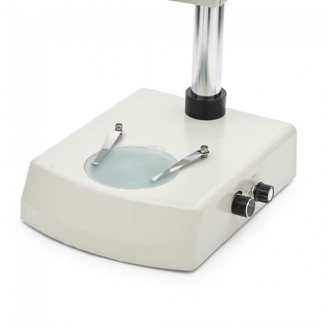 - Осветитель с галогеновой или вольфрамовой лампой 12 В, 10 Вт, и встроенным в основание микроскопа блоком питания.