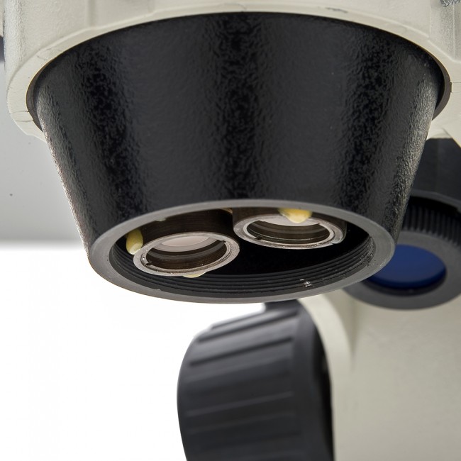 - Микроскоп отличается увеличенным рабочим расстоянием до 40 см от объектива до наблюдаемого объекта. Это облегчает манипуляцию с крупными образцами.