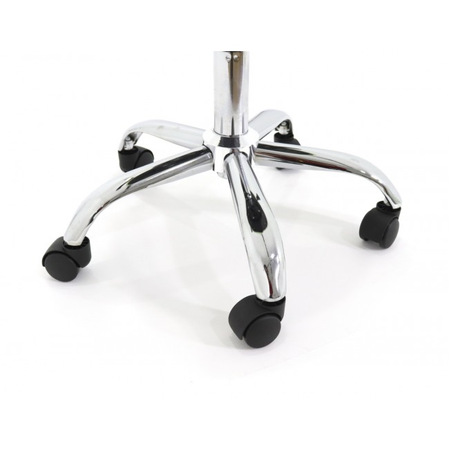 Стул имеет возможность регулировки высоты - вы можете менять ее в зависимости от проводимой процедуры. Стул установлен на пятилучье, которое делает всю конструкцию устойчивой и надежной. Небольшие колесики позволят передвигать его туда, куда вам необходимо, и при этом не царапают пол, обеспечивая мягкое и плавное движение.