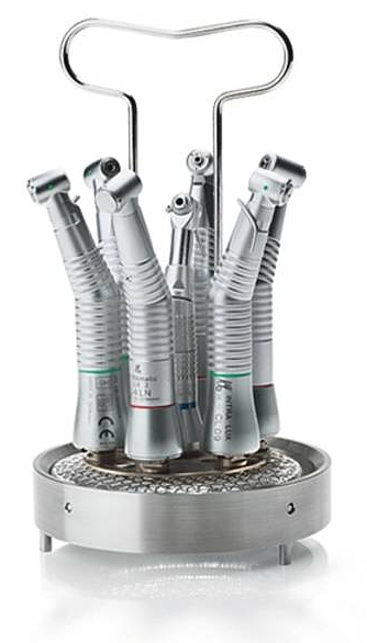- Аппарат занимает меньше места и обеспечивает быструю стерилизацию до 12 наконечников.