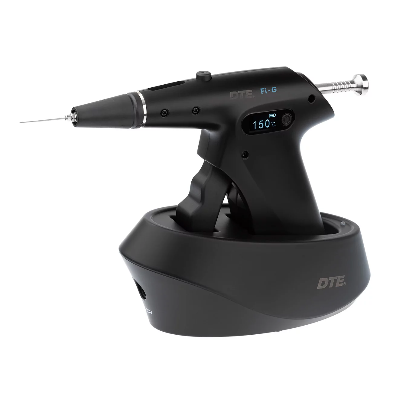 Инжектор DTE Fi-G — беспроводное эндодонтическое устройство для нагревания гуттаперчи и введения её в корневой канал через специальную канюлю, размер которой всего 0,5 мм. Это позволяет легко добраться до апикальной части канала.