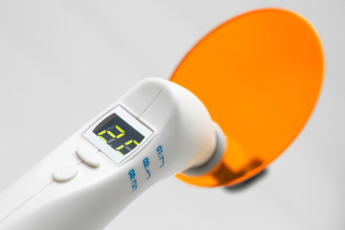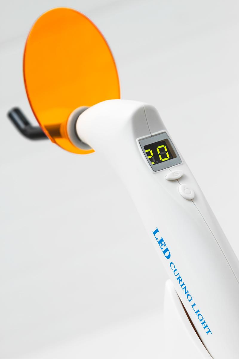 Важной особенностью ее можно считать наличие питания от 220В, легко присоединяемое к лампе при потере заряда. Собственно эта функция важна для непрерывности рабочего процесса, в случае непредвиденной разрядки (или вовремя не зарядки) полимеризационной лампы.