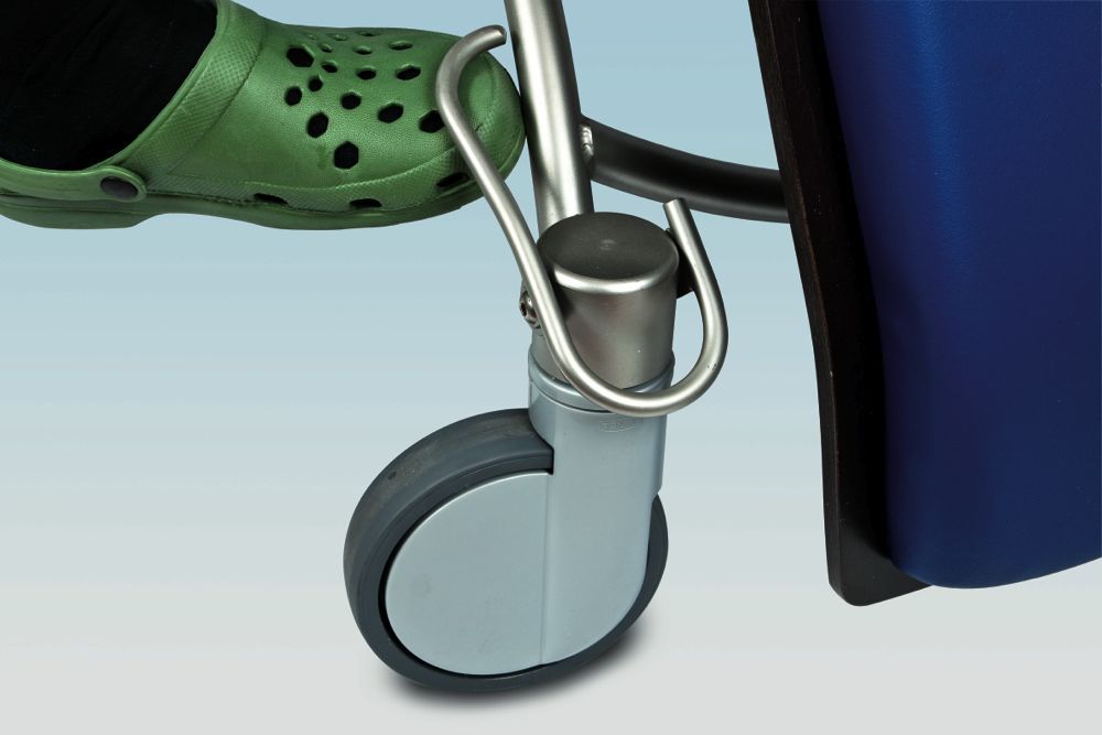 Эти направляющие ролики были разработаны для большой свободы движения в стороны (к примеру, в лифте или узкой комнате). Одно из них оснащено фиксатором, который включается нажатием на ножной рычаг и используется в случае длительного перемещения по прямой.