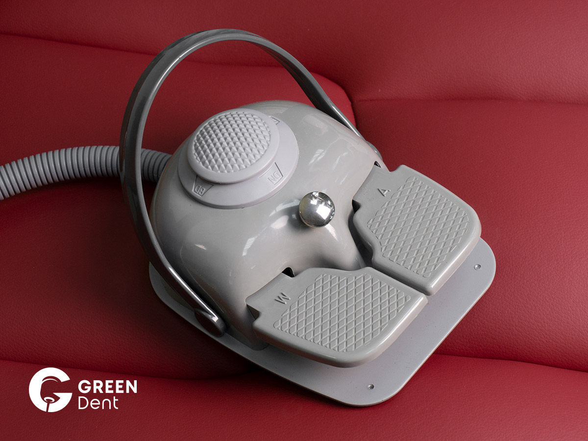 - Врачебный модуль имеет пантографическое плечо с пневмотормозом в рабочем положении и гладкую сенсорную панель управления функциями кресла.