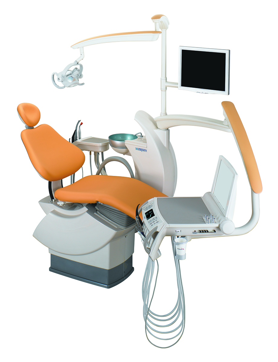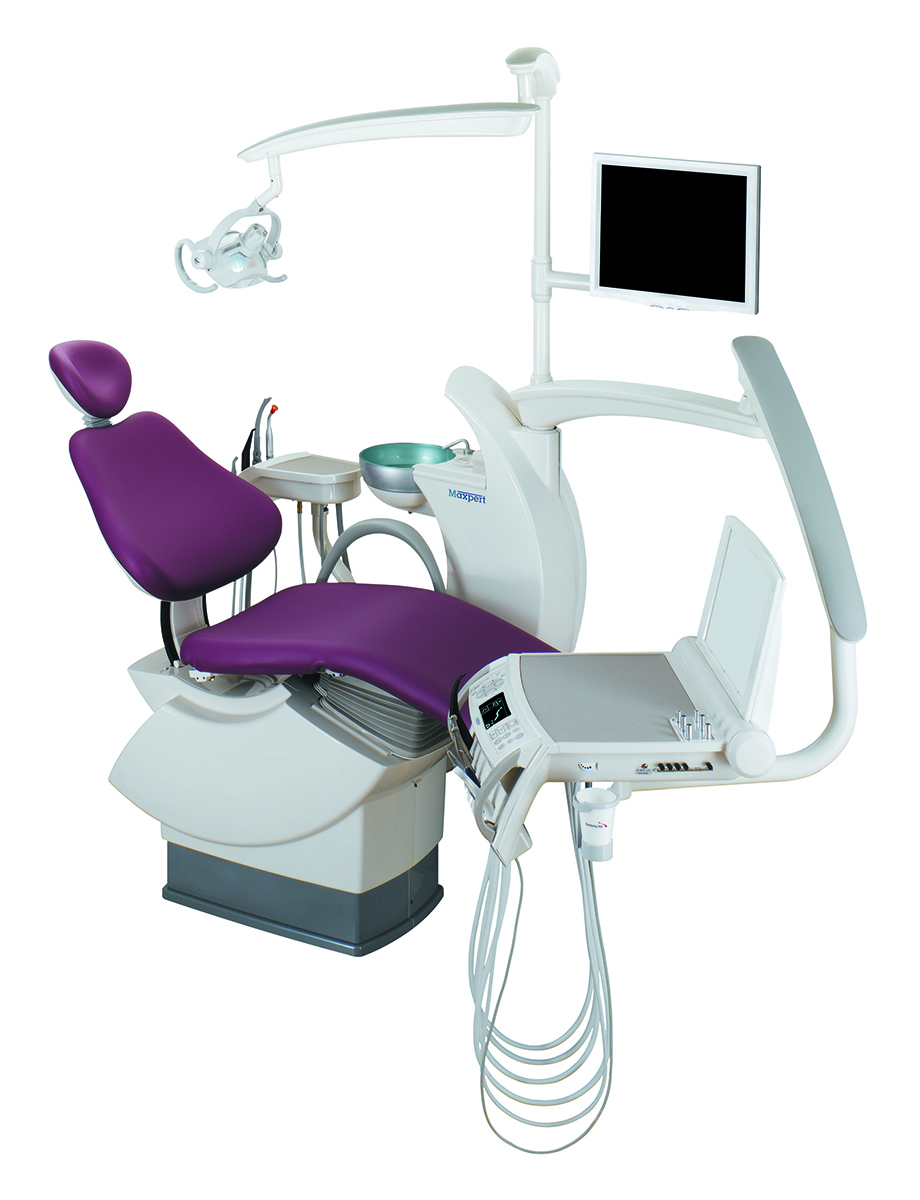 Стоматологическая установка оснащена всеми необходимыми функциями. Многие детали съёмные для комфортной дезинфекции. Наполнитель стакана с датчиком освещения.