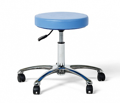 Сиденье табурета изготавливается из искусственной кожи различных цветов с основой из литого пенополиуретана высокой плотности. Крестовина литая, из алюминиевого сплава. Колеса пластиковые поворотные диаметром 50 мм. Пневмо-пружина стандартной высоты. Ручка управления изменением высоты находится под сидением. Табуреты медицинские данной модели имеют вращающееся сиденье.