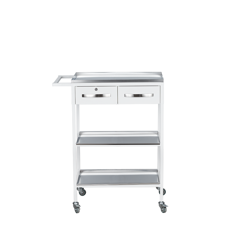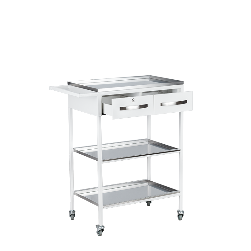 Модель 8: Полка из нерж.стали, колёса 75 мм, замок на 1 верхнем ящике
