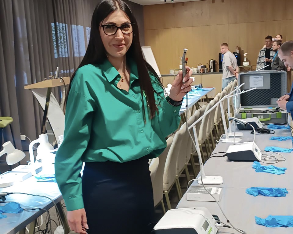 Его и многое другое инновационное стоматологическое оборудование на курс привезли специалисты компании GREEN DENT. Мы были рады встречи с каждым специалистом, спасибо за ваш интерес к нашей продукции, представленной на стенде: зеркала, бинокуляры, Piezomed, Implantmed, Piezomed plus и лазеры Medency.